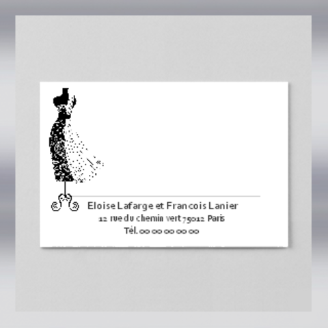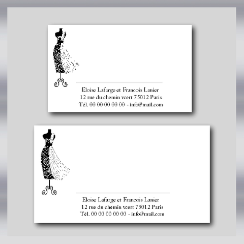 Modèle carte de correspondance pour mode féminine, vêtement femme et couture styliste. Achetez vos cartes courrier imprimées avec vos informations personnalisées. Le carton courrier est idéal pour communiquer avec vos clients et fournisseurs.