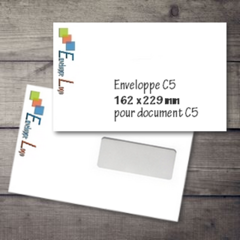 - Formats : C6 (114 x 162 mm), DL (110 x 220 mm), C5 (162 x 229 mm), C4 (324 x 229 mm)