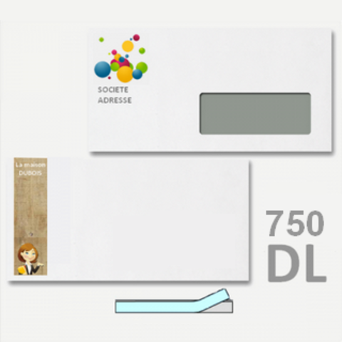 750 ENVELOPPES LONGUES DL (11 x 22 cm) à fermeture adhésive et personnalisées avec logo