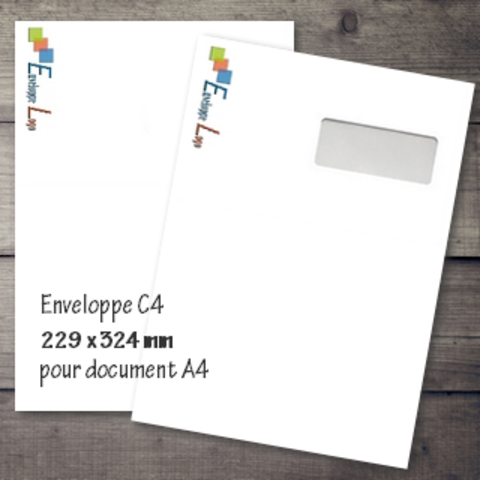 - Formats : C6 (114 x 162 mm), DL (110 x 220 mm), C5 (162 x 229 mm), C4 (324 x 229 mm)
