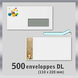 500 ENVELOPPES LONGUES DL (11 x 22 cm) à fermeture adhésive et personnalisées avec logo